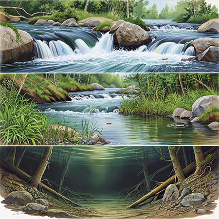 Маленькие речки, стеснённые узкими берегами, обходятся малым — всего лишь самим собой. Жизнь тут тесна, тесна и коротка, но именно эта простота дарит им особенную прелесть. Каждый камень, каждая песчинка становится частью целого мира, где рождаются поколения маленьких чудо-жителей. Не зря говорят: красота бывает разной, иногда она умещается в одной капле воды.