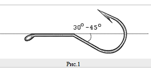Шаг первый: Мягким движением руки слегка изгибаем стержень крючка примерно на угол от тридцати до сорока пяти градусов ровно посередине, придавая элегантную форму для лучшего контакта с водой (рисунок 1).