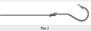 Шаг второй: Тщательно фиксируем проволочный элемент, продевая его сквозь ушко крючка и аккуратно обвивая несколько раз вдоль цевья для прочности конструкции (рисунок 2).